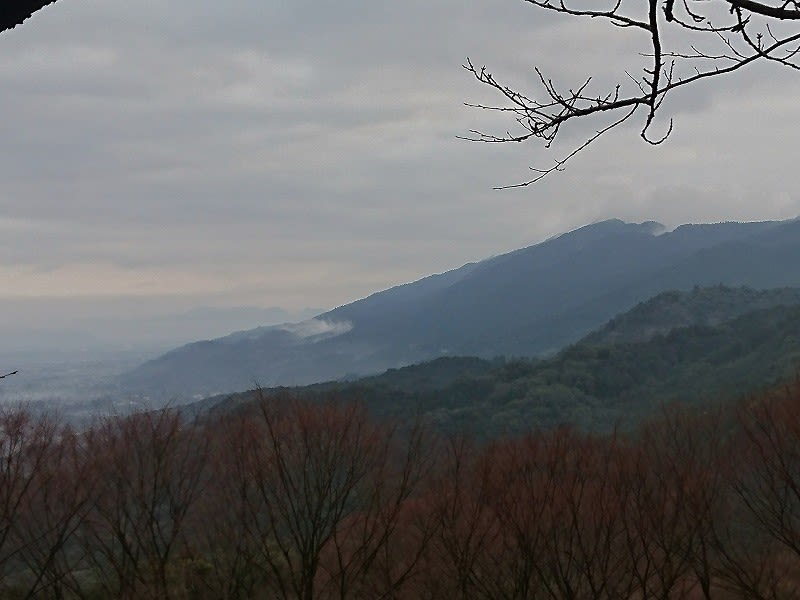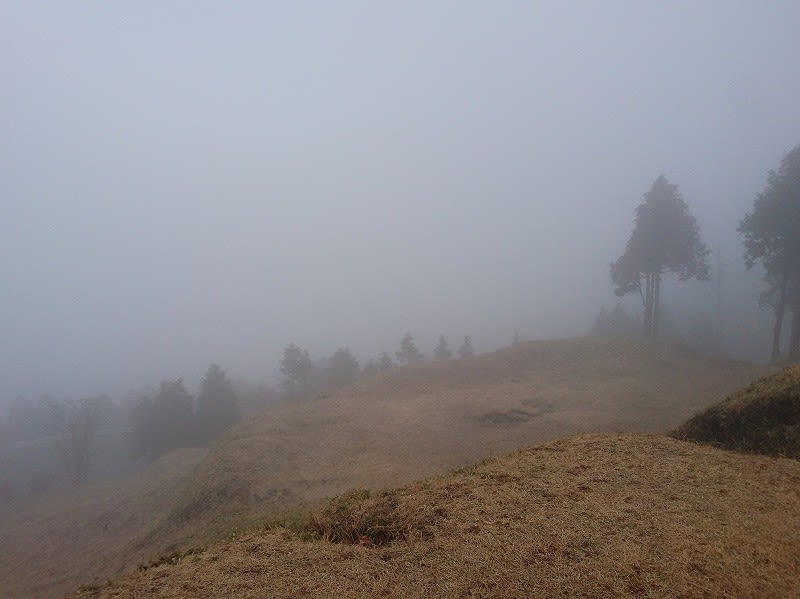 すぐ目の前は発心山の筈だが、霧で全く見えない。